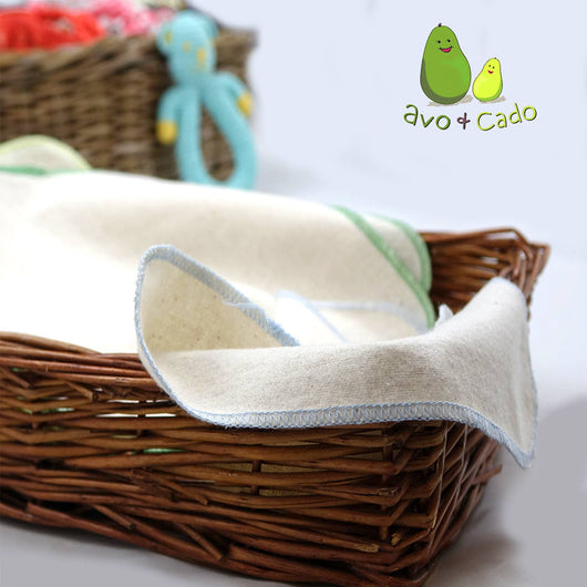 Myke og praktiske vaskekluter med farget kant, laget av 100 % økologisk, Oeko-Tex®-sertifisert og ubleket bomull. Klutene er to-lags, noe som gjør dem ekstra myke og slitesterke – perfekte til stell av baby, men også til små hender og ansikt. Et bærekraftig alternativ til engangsservietter!