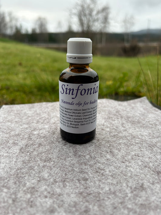 Sinfonia er en myk og balanserende hudolje laget av økologiske planteoljer og milde urteuttrekk. Den gir huden en rolig glød og et lett, smidig preg – fin både morgen og kveld, eller som et ekstra lag når huden trenger litt mer omtanke.