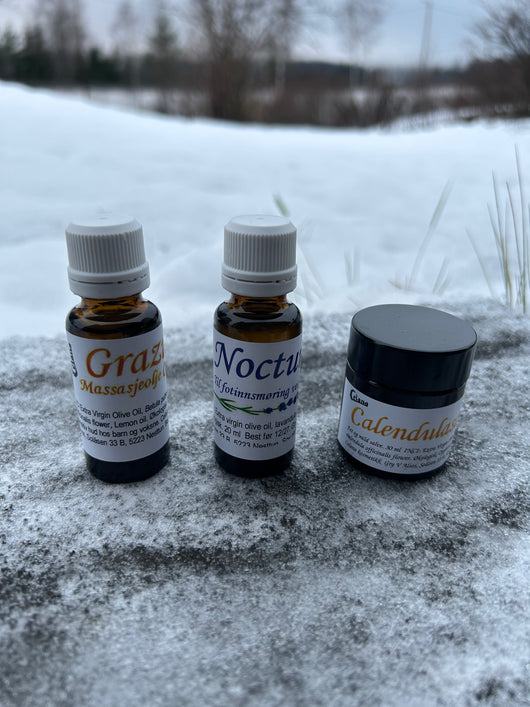 Her får du tre milde, naturlige produkter – håndlaget i Norge – pakket i en enkel brun gaveeske.