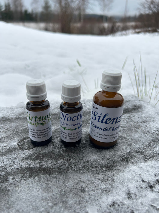 – Lavendel fotolje (20 ml): En enkel, mild olje som passer fint etter et varmt fotbad eller før leggetid.