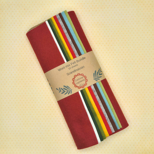 10 stk myk ullblandingsfilt i nordiske nyanser. Hver fargetone er nøye sammensatt for å gi dybde, varme og naturlig harmoni til prosjektene dine.