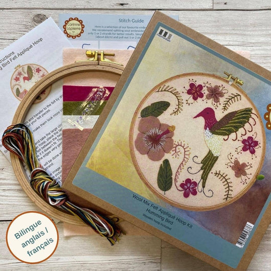 Håndarbeidssett hvor du broderer en kolibri omgitt av blomster i lette, varme fargetoner. Motivet får et luftig og poetisk uttrykk, og kan henges opp i broderirammen eller rammes inn. Broderirammen kan brukes på nytt til senere prosjekter.