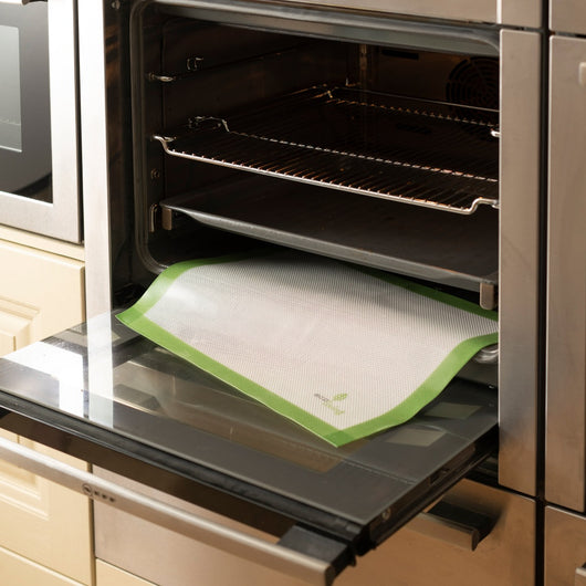 En gjenbrukbar, non-stick bake-/stekematte. Si farvel til engangslinere. Denne ovnsmatten gjør bakeplater og brett non-stick – gamle brett føles som nye igjen! Non-stick overflate betyr at du ikke trenger å tilsette fett for sunnere baking. Matten kan også brukes som sklisikkert arbeidsunderlag.