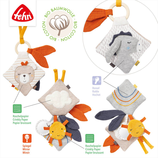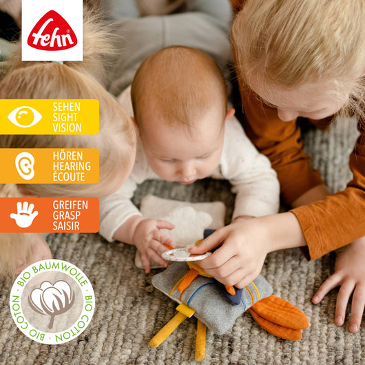 Den myke tekstilboken fra FehnNatur®-kolleksjonen inviterer de minste til å oppdage, utforske og sanse. Med motiver som esel, bamse, trær, regnbue, skyer, måne og hus, blir den en liten verden av opplevelser for barnet. Integrerte lekefunksjoner som knitrepapir, speil og pipelyd stimulerer berøringssansen, hånd-øye-koordinasjon og selvoppfatning. De ulike strukturene på hver side gir ekstra mye glede når barnet blar, kjenner og undersøker. Perfekt både hjemme og på farten!