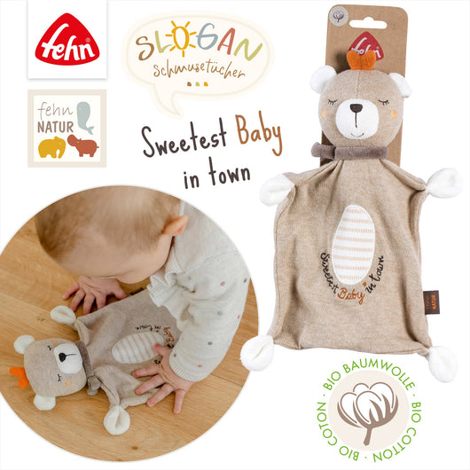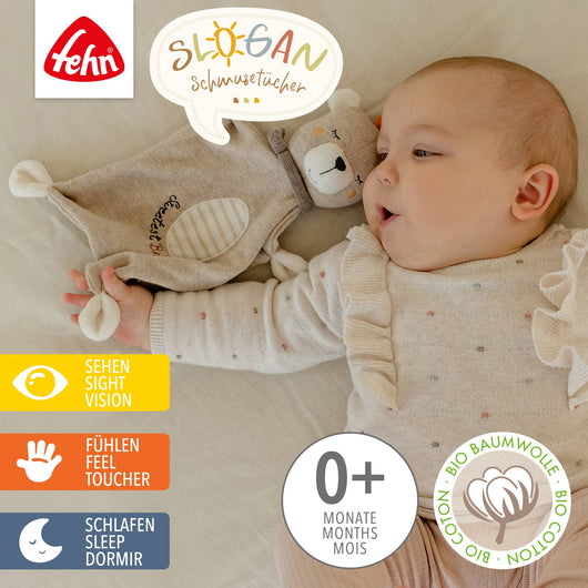 En myk og trygg koseklut fra FehnNatur-serien til Fehn, laget for å gi både nærhet, trøst og ro – fra aller første dag. Kosekluten fungerer som kosevenn, trygghetssymbol og sovestøtte i ett, og er lett for små hender å gripe, holde rundt og klemme. Det lille hodet, formen på kluten og de ulike teksturene innbyr til mye sansing, kos og nærhet – både i våken tid og når det er tid for å sove.