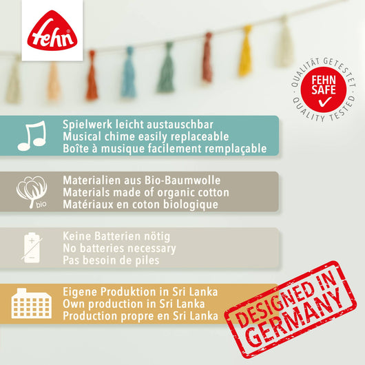 Spilledåsene fra FehnNatur-serien til Fehn er myke, trygge første venner for baby – perfekte både hjemme og på tur. De fungerer som kosevenn, sovestøtte og beroligende rytme ved legging, med en rolig nattasang som spilles når snoren trekkes opp.