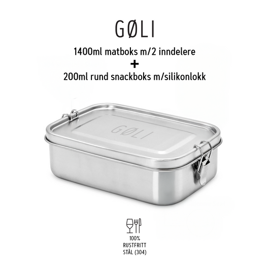GØLI | Matboks i Rustfritt Stål, inkludert 200ml Snackboks og 2 stk Skillevegger | 1.4L