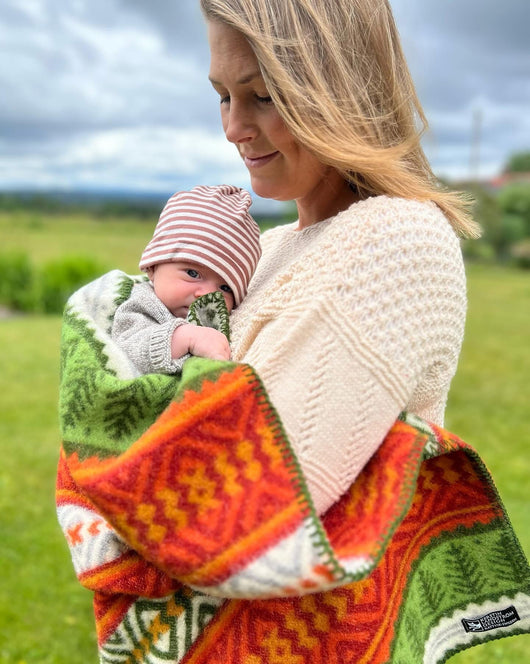 Den naturlige ullen holder på varmen selv om den blir litt fuktig, og gjør pleddet like egnet i barnevogna ute som på gulvet eller i sengen hjemme.