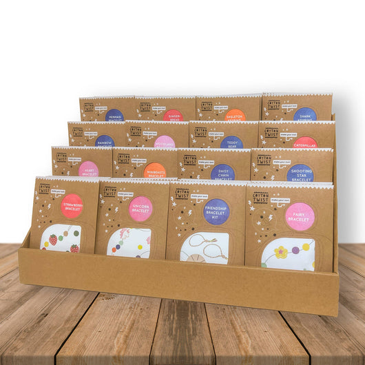Et fargerikt og plastfritt perlesett der barnet kan lage ett helt eget armbånd med regnbueperler og runde treperler. Elastikken har små metalltupper som gjør det enkelt for små hender å tre perlene selv. Settet kommer i en resirkulerbar kraftkonvolutt med instruksjonskort.