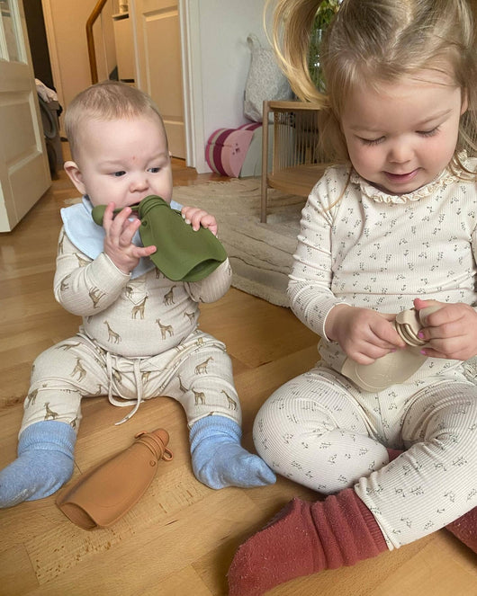 Gjenbrukbare klemme-/smoothieposer i 2-pakning, produsert i 100% silikon og med "overtrykksventil"!* Disse posene kan du: