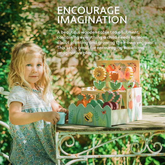 Lekesett i tre som gir barna mulighet til å lære om planting og dyrking av egne grønnsaker – på en morsom og fantasifull måte! Settet oppmuntrer til både rollelek, samarbeid og kreativitet.