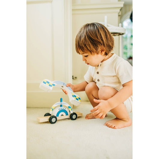 Et herlig politi-bil-leketøy som kombinerer trekking, stabling og rollelek – perfekt for små hender med stor fantasi! Barnet kan trekke politibilen etter seg, stable de solide treklossene i ulike rekkefølger og utforske former, balanse og kreativitet. Dette er et utviklende lekesett som styrker motorikk, koordinasjon og tidlig problemløsning på en morsom og trygg måte.