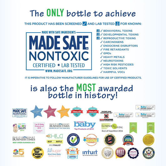 100 % plastfri konstruksjon: kun rustfritt stål og medisinsk silikon (BPA/BPS-fritt) – første og eneste linje med Made Safe®-sertifiserte barneflasker.