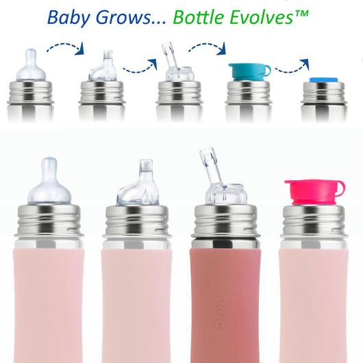 Puras filosofi «One life… One bottle™» og «Baby grows… bottle evolves™» handler nettopp om dette: kjøp én solid flaske, og bytt bare topp når behovene endrer seg – fra baby til barnehage, skole og voksenliv.