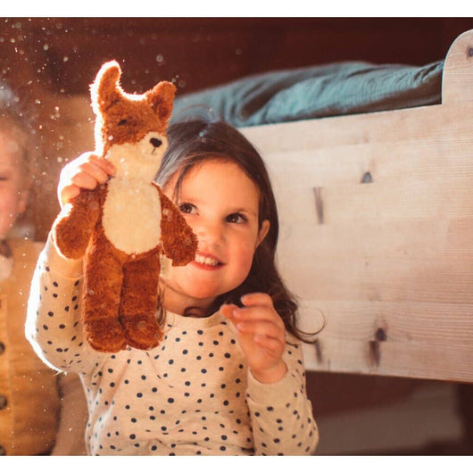 En myk og sjarmerende babyrev fra Senger Naturwelt – laget for små hender, store klemmer og rolige øyeblikk. Den varme rustrøde fargetonen og det milde uttrykket gir en naturlig og lun tilstedeværelse, enten den ligger i sengen, på barnerommet eller i stuen. Hver babyrev er håndlaget i Europa av GOTS-sertifisert økologisk bomull og fylt med ren økologisk saueull. Den er helt plastfri, fri for syntetiske fibre og skapt for å vare – et kosedyr laget med omtanke, og ment å bli en trofast liten venn barnet kan ta med overalt.