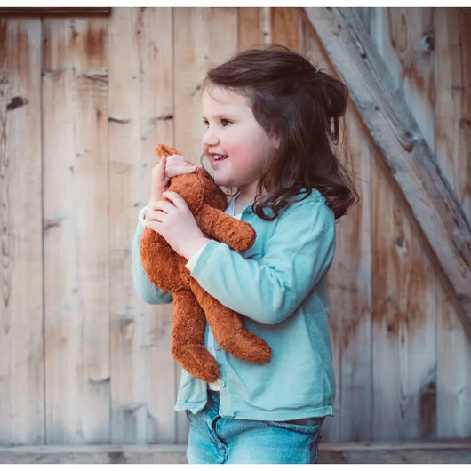 Hvert ekorn er håndlaget i Europa, helt plastfritt og fri for syntetiske fibre – et ekte kvalitetsprodukt laget for å vare, elskes og gå i arv. Den varme fargetonen gjør det like fint på barnerommet som i lek og trøst i hverdagen.