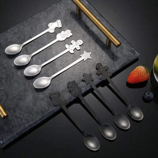 Gjør desember litt mer magisk med dette stemningsfulle settet av 4 teskjeer med juledekorasjoner. Skjeene passer perfekt til julekaffen, varm kakao eller desserter – og er like fine å bruke selv som å gi bort.