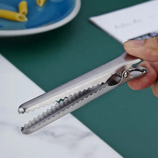 Upptäck våra små tätningsklämmor i rostfritt stål, det perfekta tillbehöret för att bevara färskheten i din mat, te, kryddor och kaffepåsar!