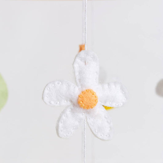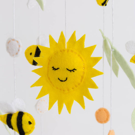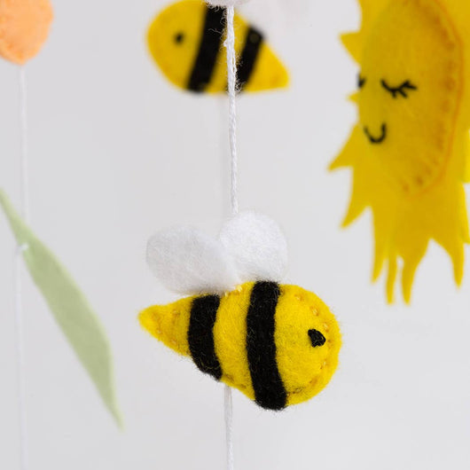 Bee Mobile Felt Craft Kit. Brighten up your little one's nursery, with our felt Bee Mobile. With this beginner level felt kit, you will use our simple templates to cut and sew up cute little buzzing bees and dainty daisies.