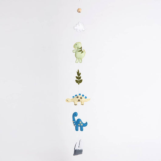 Dinosaur Garland Felt Craft Kit. Our roar-some felt kit, is the perfect entry level project, for anyone wanting to start their crafting journey. Included within this pattern, are simple illustrated instructions to help guide you through the stitches used.