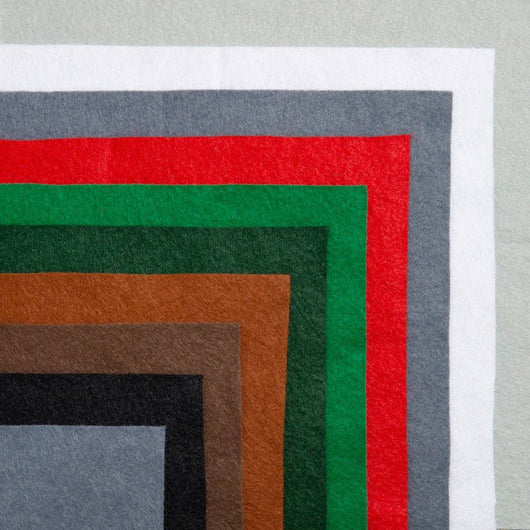 We have curated a fantastic range on 13 colour palettes for you to choose from. Each bundle comes with 10 sheets of beautiful wool blended felt measuring approximately 22.5 cm square.
