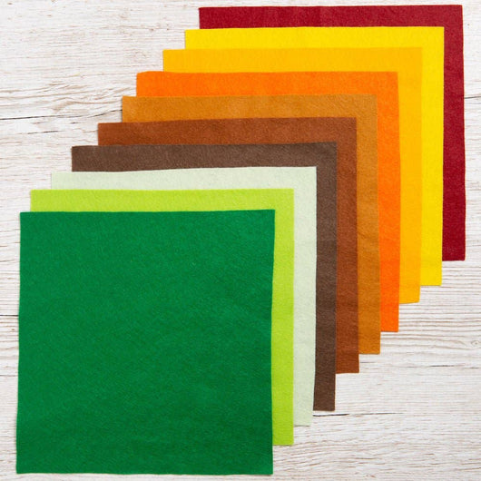 We have curated a fantastic range on 13 colour palette for you to choose from. Each bundle comes with 10 sheets of beautiful wool blended felt measuring approximately 22.5 cm square.