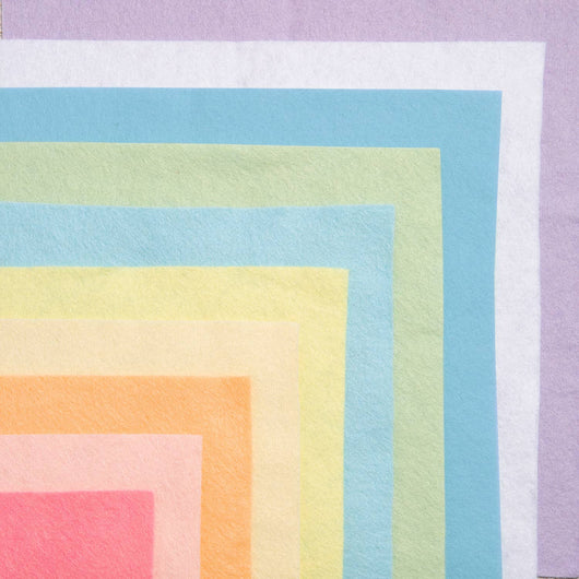 We have curated a fantastic range on 13 colour palettes for you to choose from. Each bundle comes with 10 sheets of beautiful wool blended felt measuring approximately 22.5 cm square.