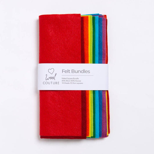 We have curated a fantastic range on 13 colour palettes for you to choose from. Each bundle comes with 10 sheets of beautiful wool blended felt measuring approximately 22.5 cm square.