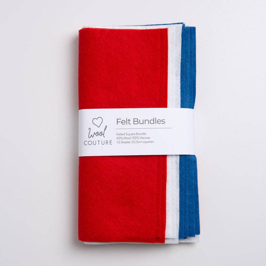 We have curated a fantastic range on 13 colour palettes for you to choose from. Each bundle comes with 10 sheets of beautiful wool blended felt measuring approximately 22.5 cm square.