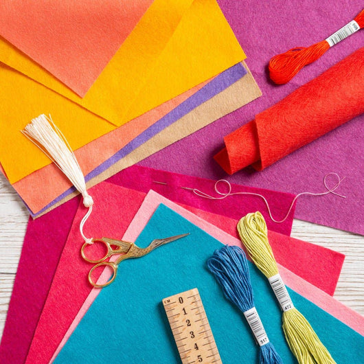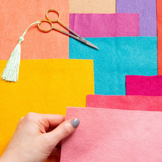 Pick up your scissors and get crafting with our new Felt collection. Felt is an incredibly versatile material that can be cut, sewn or glued to create a multitude of projects. From small embroidered tokens to dolls clothes or the possibilities are endless! Looking for something specific? Pick your own colours from our range of 41 fantastic felt colours! Each sheet is made from 45% wool and 55% viscose and stands at 22.5cm square; perfect for your crafting needs. We also sell our Felt in bundles! Choose from our carefully curated collection of 13 bundles to find the palette that works for you!